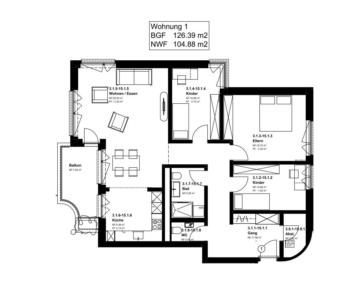 | 1.15.1 | 15. OG | 4,5 | 126 m2 | |||